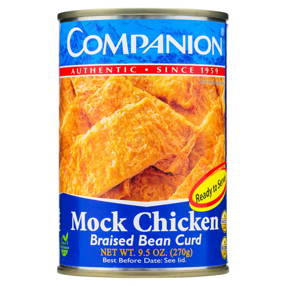 Companion Mock Chicken, also known as Braised Bean Curd, is a vegetarian dish that mimics the texture and taste of chicken using tofu or bean curd. In this dish, bean curd is typically braised in a flavorful sauce made from soy sauce, ginger, garlic, and various spices. The bean curd absorbs these savoury flavours, resulting in a dish that is both hearty and satisfying. Companion Mock Chicken is popular among vegetarians and those seeking meat alternatives due to its ability to provide a protein-rich and flavorful option in Asian cuisine. It is often enjoyed alongside rice or noodles, offering a nutritious and delicious meal option.