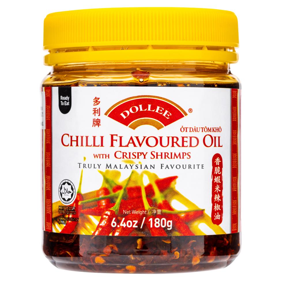 Dollee Chilli Flavoured Oil with Crispy Shrimps combines the fiery heat of chilli oil with the savoury crunch of crispy shrimp, creating a delectable and versatile condiment. This unique blend adds layers of flavour and texture to your dishes, making it a perfect accompaniment for a wide range of cuisines. The chilli oil infuses the dish with a spicy kick, while the crispy shrimp adds a delightful crunch and a hint of seafood flavour. Use it as a topping for noodles, salads, or stir-fries to add both heat and texture. Alternatively, use it as a dipping sauce for dumplings, spring rolls, or other snacks for an extra punch of flavour. With Dollee Chilli Flavoured Oil with Crispy Shrimps, you can easily elevate your dishes and tantalize your taste buds.