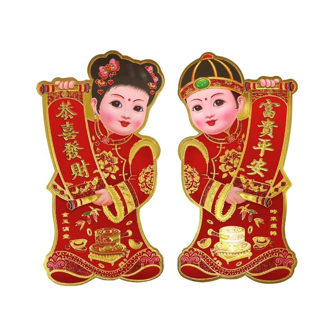 Golden Boy and Jade Maiden Door Decoration 金童玉女門貼
