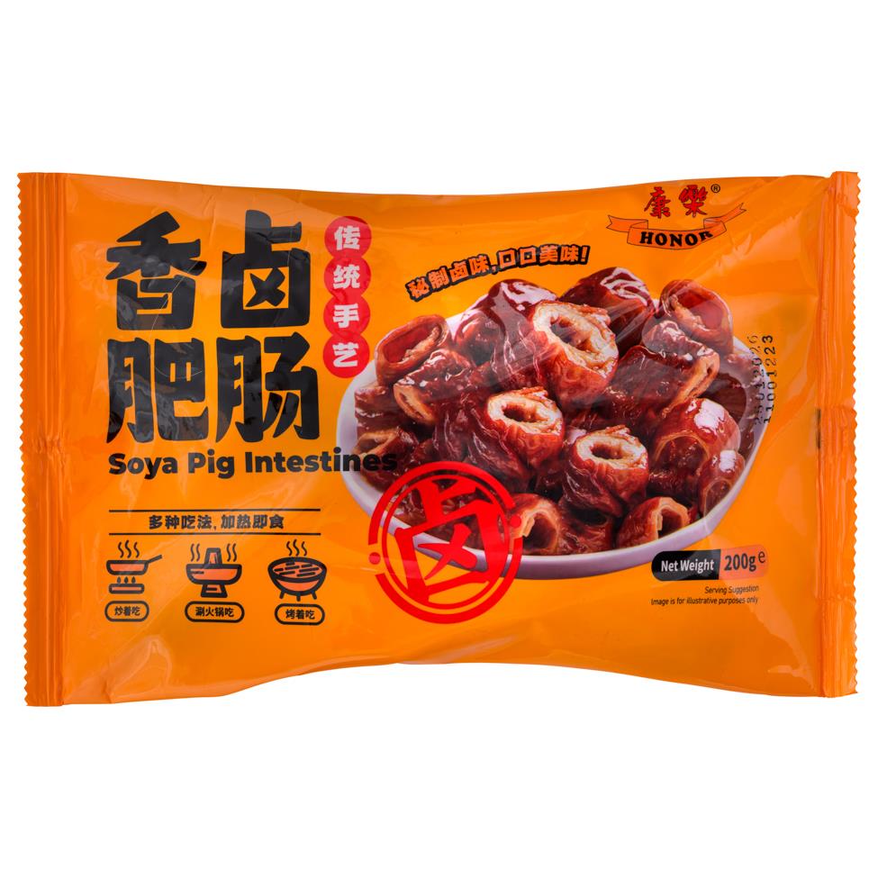 Honor Braised Pig Intestines are slow-cooked in a rich, aromatic braising sauce, resulting in a tender texture and savoury depth of flavour. Perfect for hot pots, stir-fries, or enjoying as a cold appetiser.