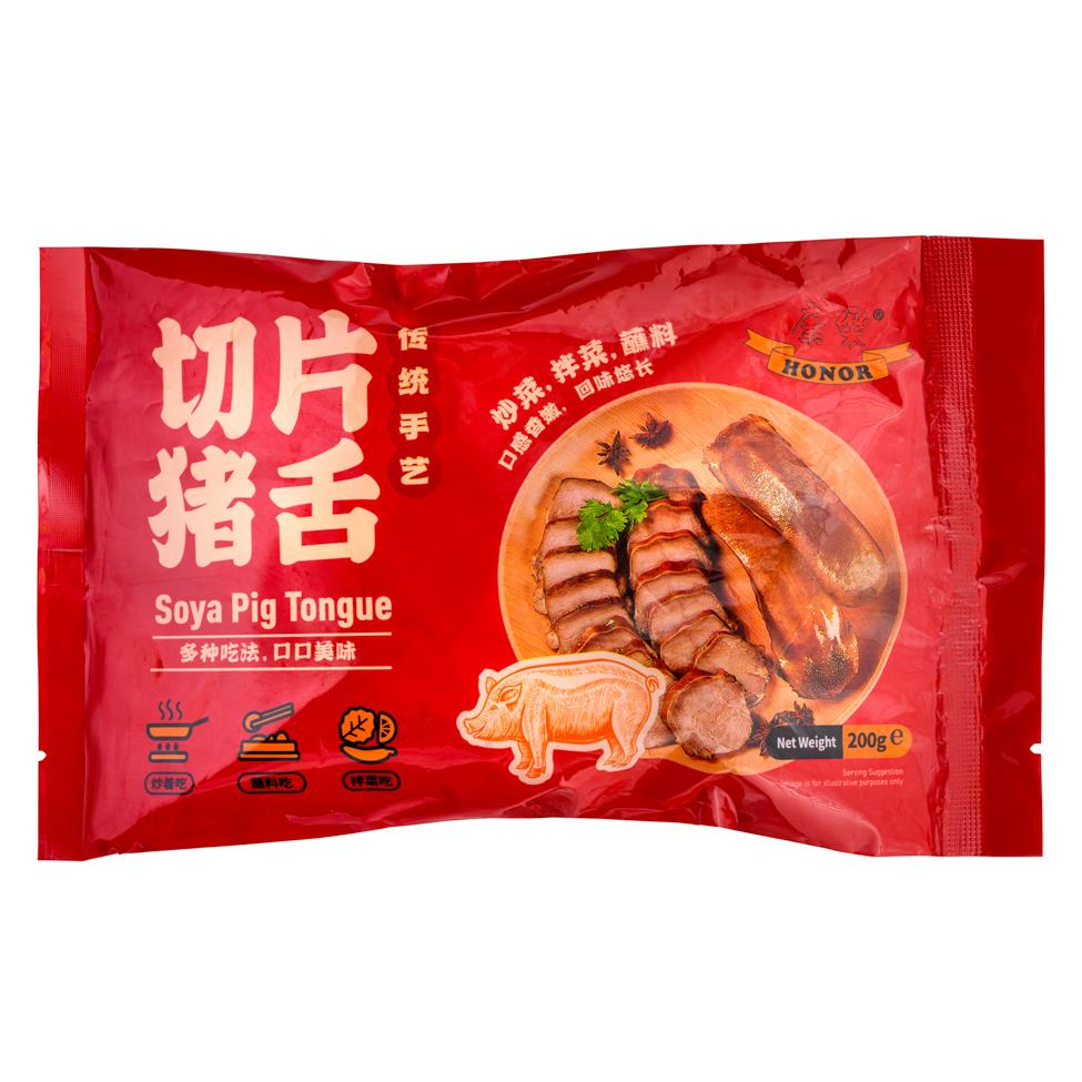 Honor Soya Pig Tongue is a pre-seasoned delicacy, slow-cooked in a rich braising sauce for a tender texture and deep umami flavour. Convenient and ready to heat, it is perfect for slicing into stir-fries, noodle dishes, or enjoying on its own as a savoury appetiser.
