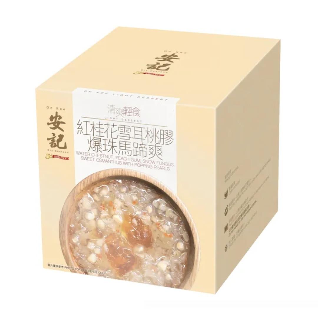On Kee Ready-to-Eat Light Dessert (On Kee Water Chestnut, Peach Gum, Snow Fungus, Sweet Osmanthus with Popping Pearls) 安記 清潤輕食 (紅桂花雪耳桃膠爆珠馬蹄爽)