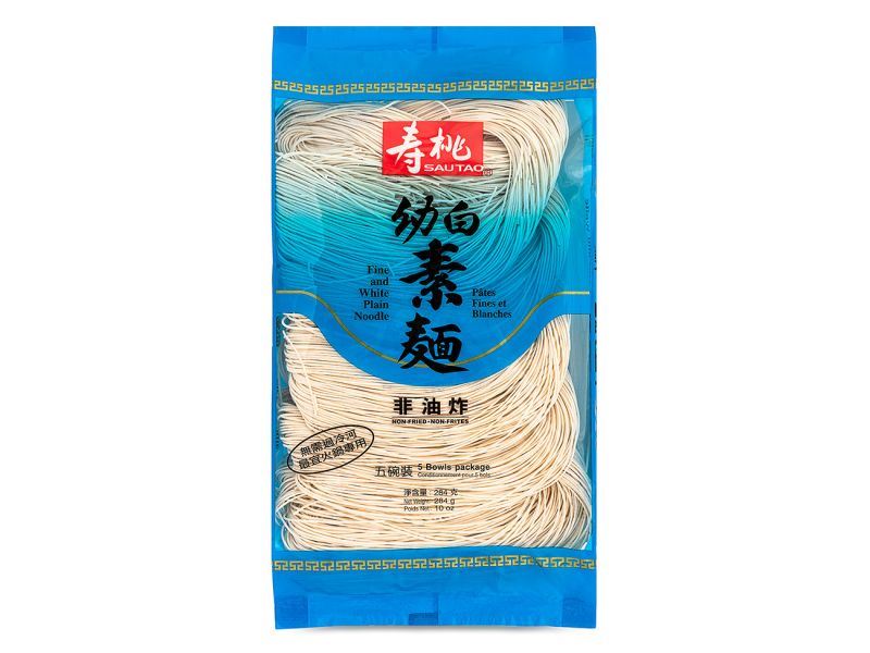 Sau Tao noodles are the most popular premium noodle brand in Hong Kong. The company was founded in 1960, selling traditional handmade noodles. Today they produce a wide range of noodle products, including a tasty selection of instant noodles. Sau Tao's Fine & White Plain Noodles are a packet of thin, delicate, and bright white wheat noodles that are perfectly suited to a wide range of Hong Kong-style dishes. Quick and easy to prepare, simply add to boiling water for 8 to 10 minutes, or until thoroughly cooked, and enjoy.