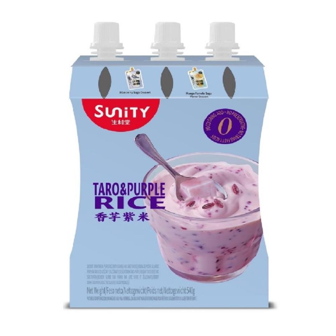 Indulge in the delightful fusion of textures and flavours with Sunity Taro & Purple Rice Dessert. Each pack includes three individual servings of silky, velvety taro pudding layered over naturally nutty and chewy purple rice. Perfectly balanced in sweetness and subtly aromatic, this convenient treat is ready-to-eat straight from the fridge or warmed for added comfort. Ideal for afternoon indulgence, dessert on-the-go, or a sharing platter, it brings a nourishing taste of Asia to any occasion.